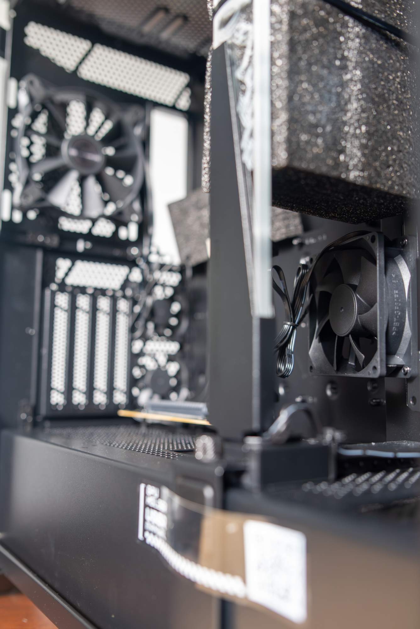 Overall, the case is very builder friendly. The PCIe bracket uses quick latches, so switching to vertical mounting is quick and easy. Working inside during a build is comfortable thanks to the thoughtful layout. There’s lots of room behind the motherboard tray to hide cables, drives can be mounted on removable trays outside the case, and all panels (top, front, side) are removable, which gives easy access from every direction.